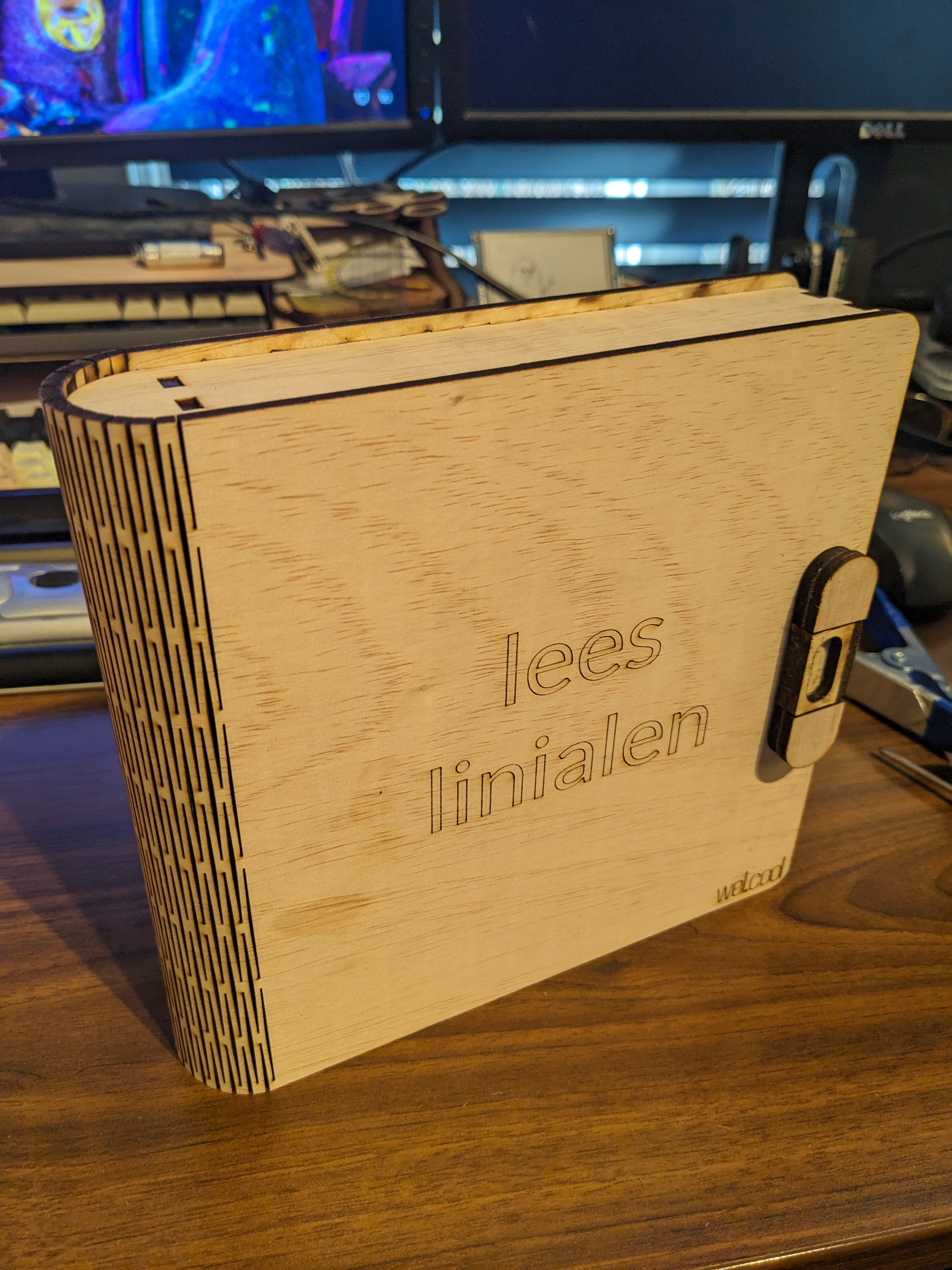 Er zijn daar veel verschillende soorten doosjes en dergelijke te vinden. Ik koos er één uit die lijkt op een boek. Leg alle linialen tegen elkaar aan en meet de lengte, breedte en hoogte op.